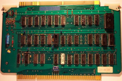 This is the monitor drive card for the computer, it has a zoom and an inverse text function. it has two 2114 sram chips for the video memory.