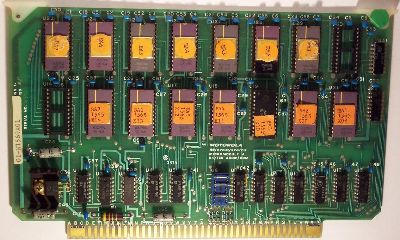 This is the hidden refresh memory board populated with 9 4116 sram chips. This board is also used in the Motorola Exorciser computer. Motorola part No. MEX6816-1